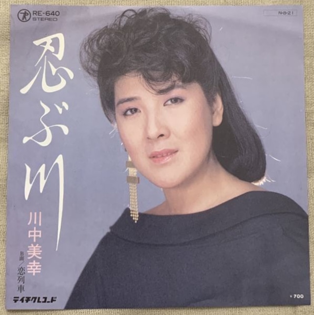 A面 「忍ぶ川」 作詩/吉岡治、作曲/市川昭介、編曲/斉藤恒夫 B面 「恋列車」 作詩/吉岡治、作曲/市川昭介、編曲/斉藤恒夫 1984年、定価700円、テイチク、番号RE-640 ジャケットの状態はシワが少し 盤はヘッドフォンで試聴済みで、当時のアナログ中古盤としては特に問題ないように思われました
