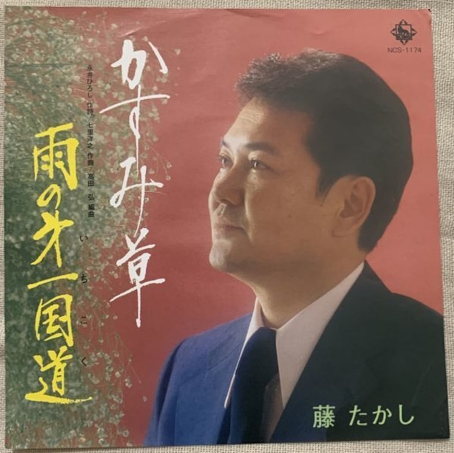 A面 「かすみ草」 作詩/永井ひろし、作曲/七里洋之、編曲/高田弘 B面 「雨の第一国道」 作詩/永井ひろし、作曲/七里洋之、編曲/高田弘 キング、番号NCS-1174 ジャケットの状態はシワが少し 盤はヘッドフォンで試聴済みで、当時のアナログ中古盤としては特に問題ないように思われました