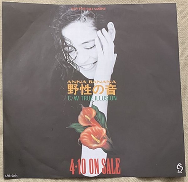 ★★★★★★★★★★★★★★★★★★★★★★★★★★★★★ 宣伝用(プロモ)の非売品のアナログの7インチ・シングルです 正規で販売されていたものではありません そのようなものにご理解のある方のみご入札ください ★★★★★★★★★★★★★★★★★★★★★★★★★★★★★ A面は4つ打ちのビートにヘヴィーなシンセ・ベースがゴキゲンな和ブギー・ナンバー B面はしっとりしたボサ・ノヴァ風のナンバー https://drive.google.com/file/d/1NOpJyApz7JdewnKO8f2M3PXIu1_q6B3T/view?usp=sharing 1990年、番号LRS-2074 アンナ・バナナ Anna Banana A面 「野性の音」 作詩/森雪之丞、作曲・編曲/井上ヨシマサ B面 「True Illusion 作詩・作曲/Anna Banana、編曲/斎藤誠 ジャケットの状態はシワが少し 盤はヘッドフォンで試聴済みで、A面は特に問題ありませんが、B面で2回転程プチッと聴こえる部分があります