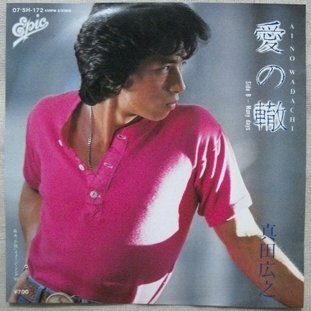 A面 「愛の日々を」 作詩/千家和也、作曲/さとう宗幸、編曲/石川鷹彦 B面 「黄昏にLove Song」 作詩/荒木とよひさ、作曲/さとう宗幸、編曲/若草恵 A面は「エスエス製薬 ラカルト・ニュー5」イメージ・ソング、B面は「NHK新ラジオ歌謡」 1985年、定価700円、キング、番号K07S-701 ジャケットの状態はシワが少しと茶色のシミが多少 盤はヘッドフォンで試聴済みで、当時のアナログ中古盤としては特に問題ないように思われました