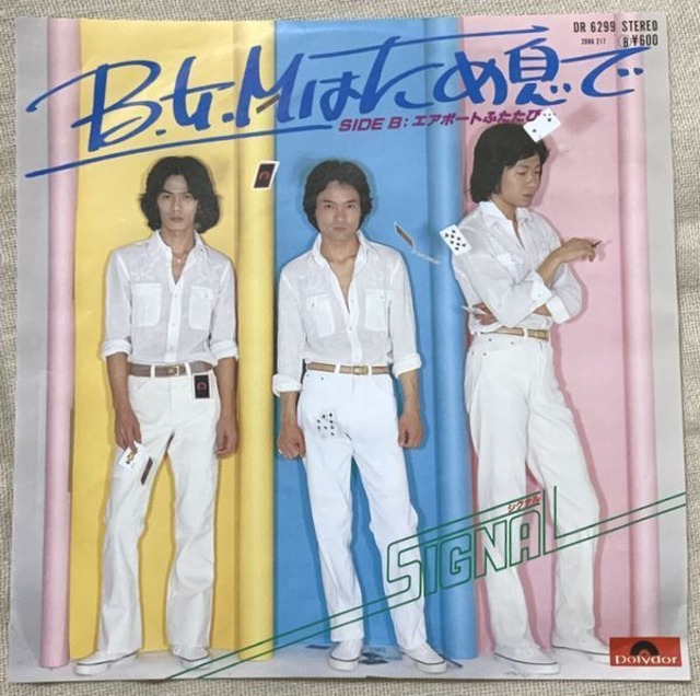 A面 「B・G・Mはため息で」 作詩/中里綴、作曲/住出勝則、編曲/船山基紀 B面 「エアポートふたたび…」 作詩/有川正沙子、作曲/住出勝則、編曲/大村雅朗 1979年、定価600円、ポリドール、番号DR-6299 ジャケットの状態はシワが少し 盤はヘッドフォンで試聴済みで、当時のアナログ中古盤としては特に問題ないように思われました