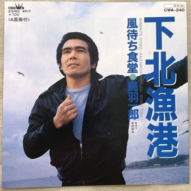A面 「下北漁港」 作詩/星野哲郎、作曲/船村徹、編曲/丸山雅仁 B面 「風待ち食堂」 作詩/新本創子、作曲/船村徹、編曲/丸山雅仁 1984年、定価700円、クラウン、番号CWA-240 ジャケット3面見開きで内側が振り付けが掲載されている仕様 状態は茶色のシミが少し~多少 盤はヘッドフォンで試聴済みで、B面で瞬間的にプチッと聴こえるような部分はありますが全体的には当時のアナログ中古盤としては大きな問題はないように思われました