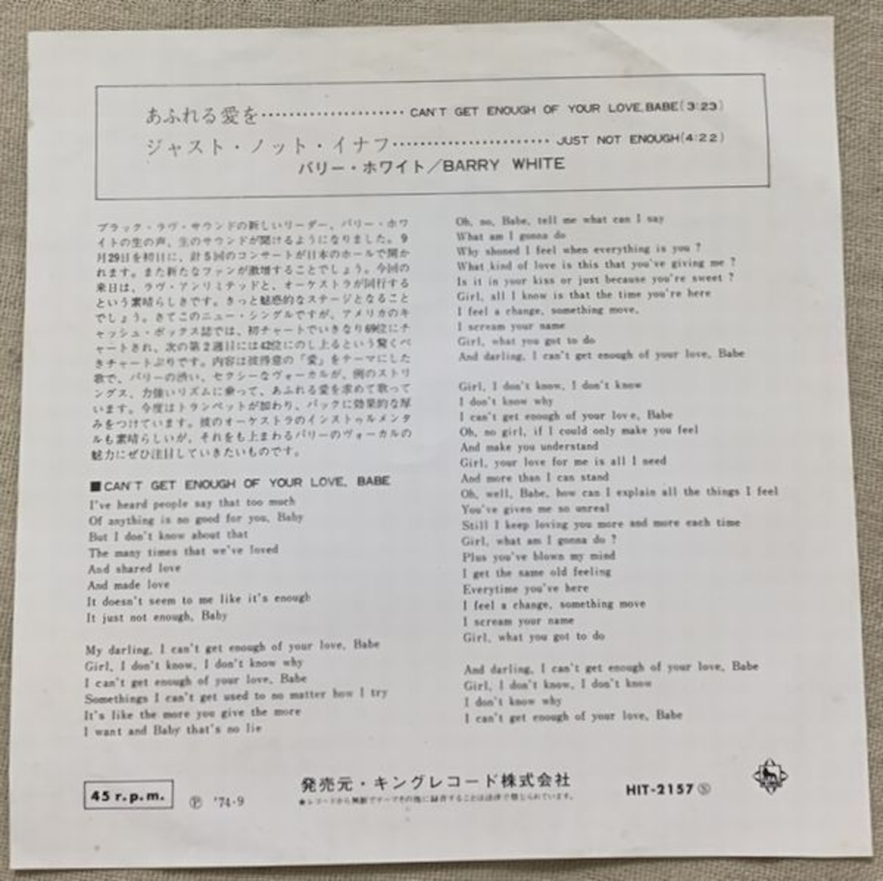 1974年、定価500円、キング、番号HIT-2157