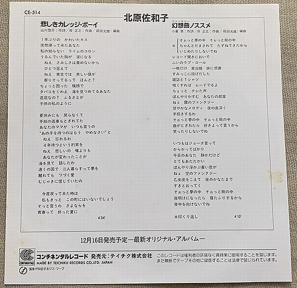 北原佐和子 / 悲しきカレッジ・ボーイ
