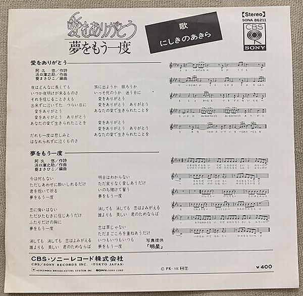 定価400円、CBS・ソニー、番号SONA 86211