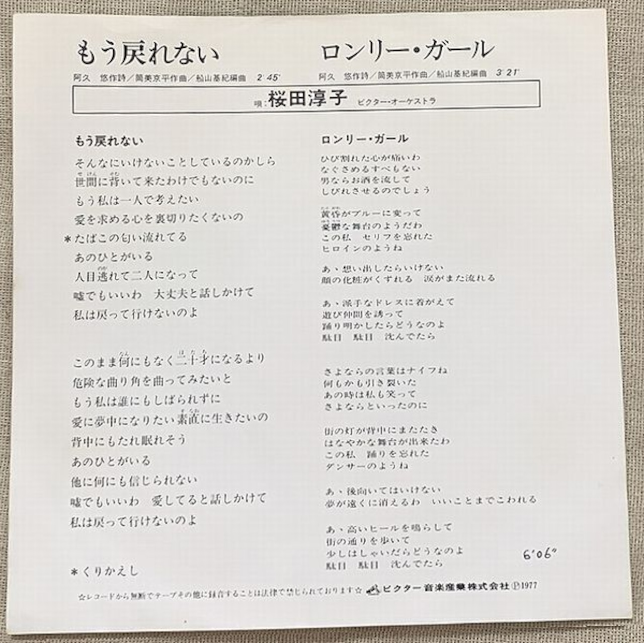 1977年、定価500円、ビクター音楽産業、番号SV-6276