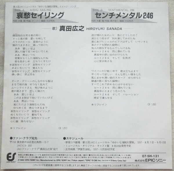 1982年、定価700円、EPIC・ソニー、番号07・5H-131