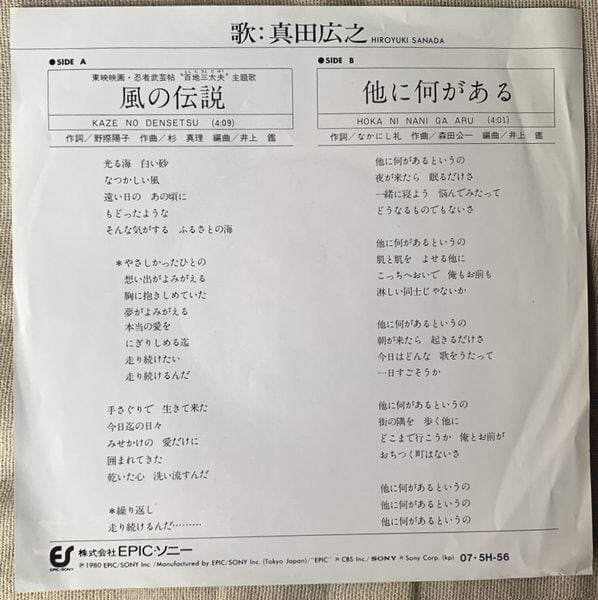 1980年、定価700円、EPIC・ソニー、番号07・5H-56