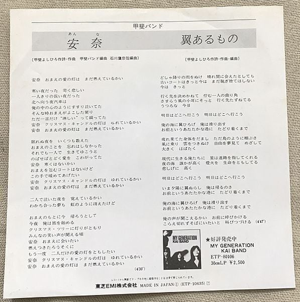 定価600円、東芝EMI、番号ETP-10635