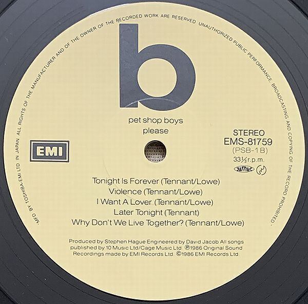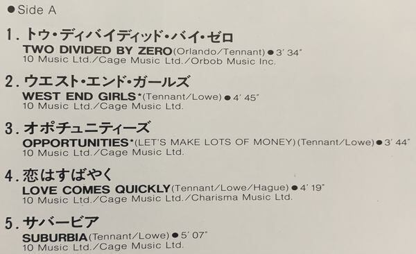 人気ナンバー「West End Girls」、「Suburbia」収録の1986年のデビュー・アルバム、オススメ曲は上記のA2とA5です