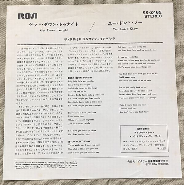A面「ゲット・ダウン・トゥナイト」Get Down Tonight