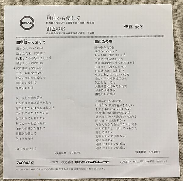 作詩/阿木燿子、作曲/宇崎竜童、編曲/高田弘