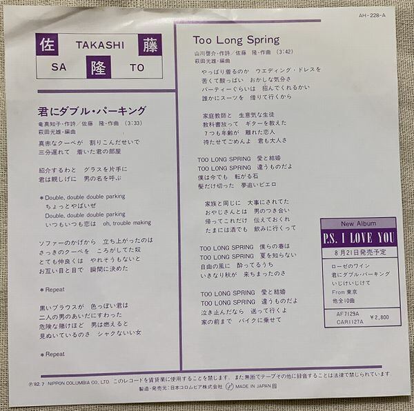 作詩/竜真知子、作曲/佐藤隆、編曲/萩田光雄