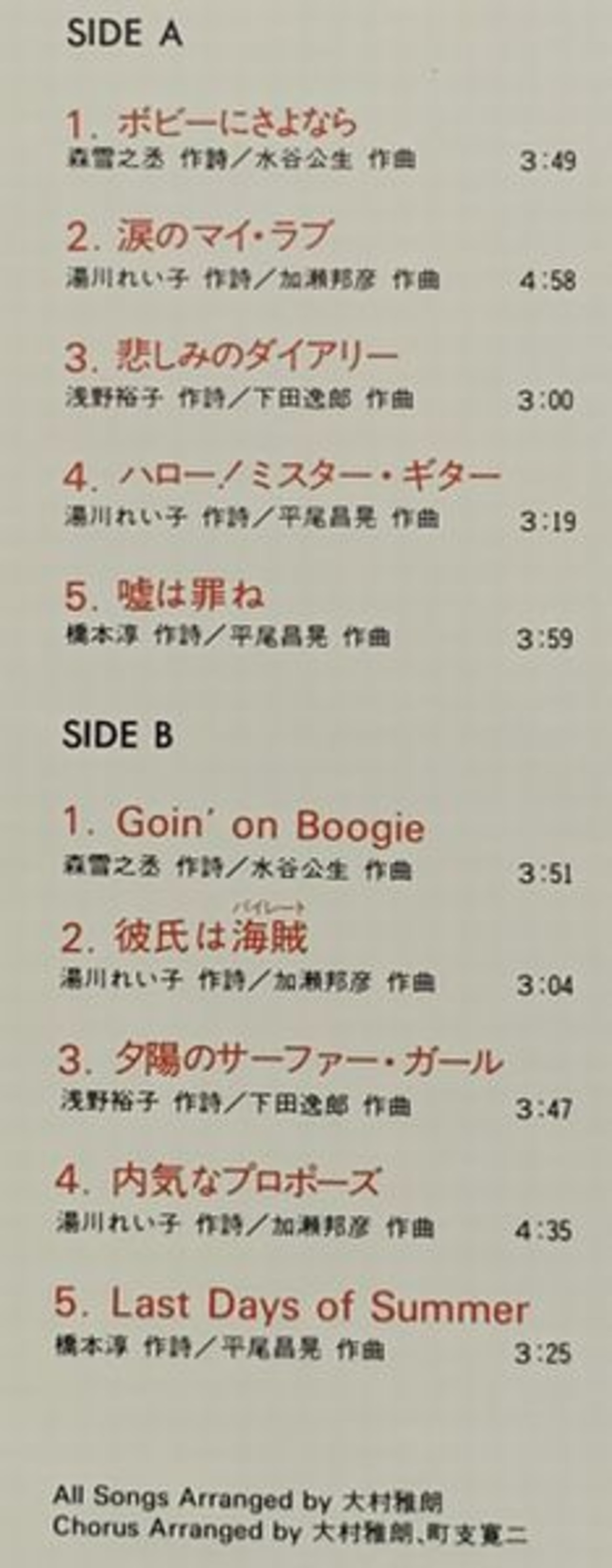 B4 内気なプロポーズ 作詞:湯川れい子/作曲:加瀬邦彦