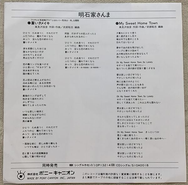 1988年、定価700円、ポニーキャニオン、番号7A0-835