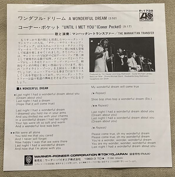 A面「ワンダフル・ドリーム」A Wonderful Dream