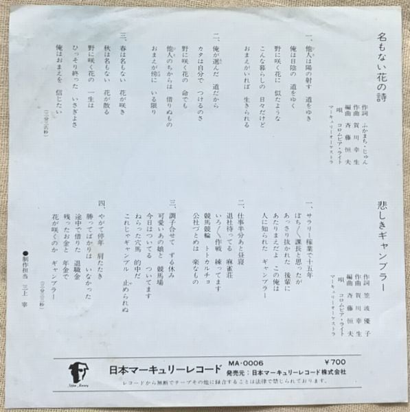 作詩/笠波優子、作曲/賀川幸生、編曲/斉藤恒夫