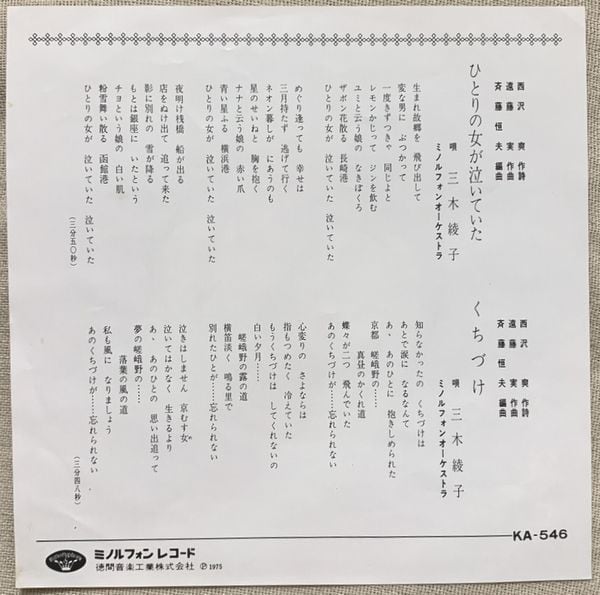 1975年、定価500円、ミノルフォン~徳間音楽工業、番号KA-546