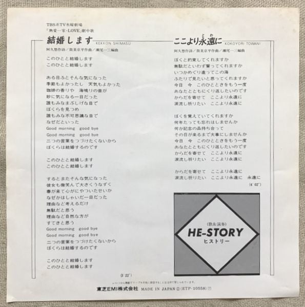 1979年、定価600円、東芝EMI、番号ETP-10558