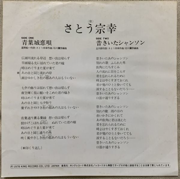 作詩/星間船一、作曲/さとう宗幸、編曲/石川鷹彦