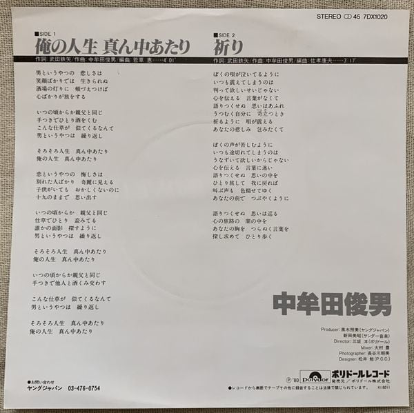 1980年、定価700円、ポリドール、番号7DX1020