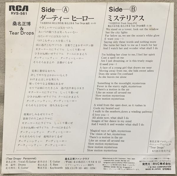 作詩/下田逸郎、訳詩/Frank Simes、作曲/難波丞辰、編曲/桑名正博&Tear Drops