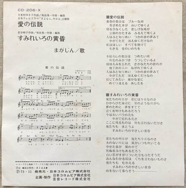1973年、定価500円、日本コロムビア、番号CD-206-X