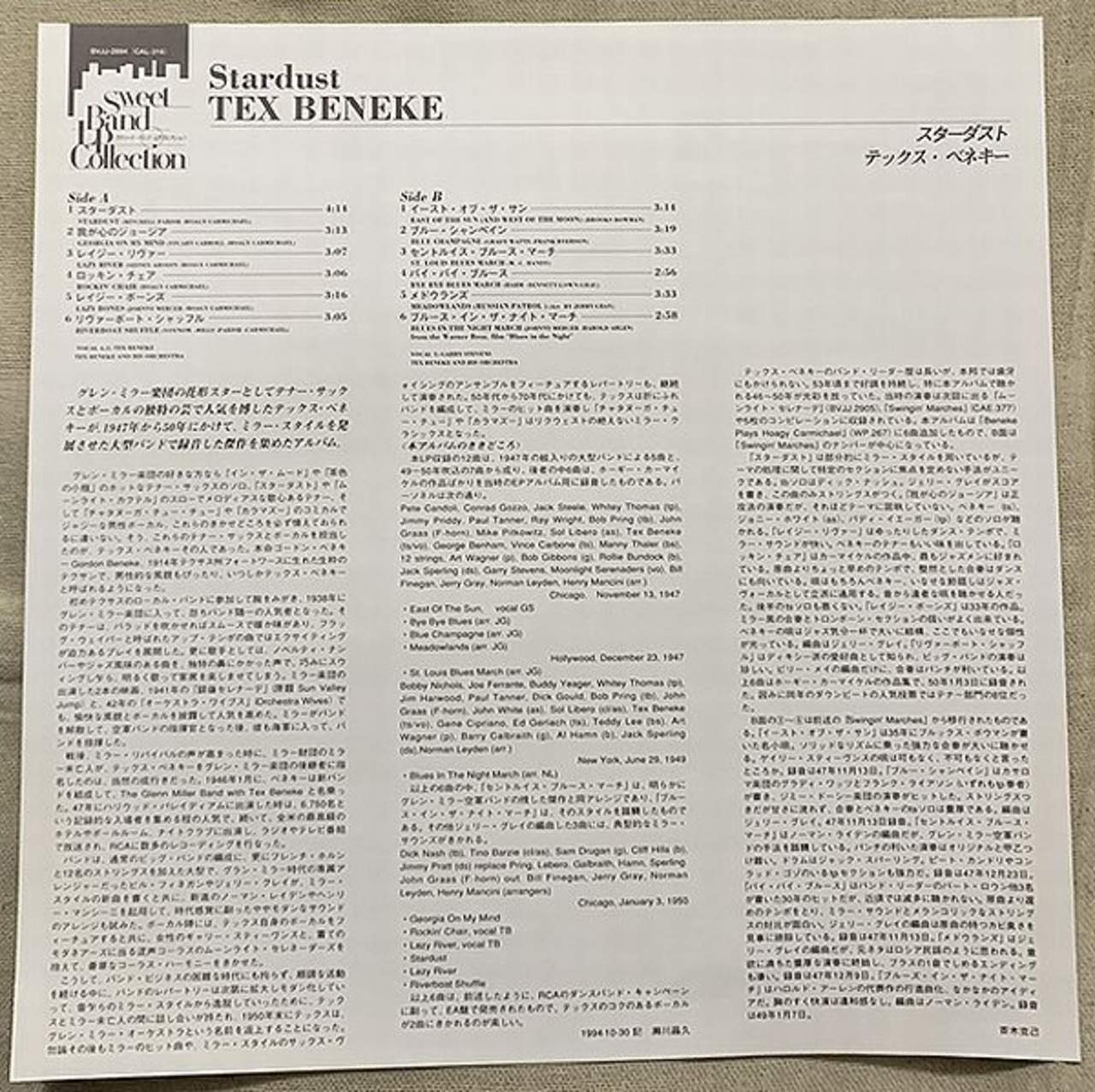 グレン・ミラー楽団の花形スターとしてテナー・サックスとヴォーカルの独特の芸で人気を博したテックス・ベネキーが、1947年から50年にかけてミラー・スタイルを発展させた大型バンドで録音した傑作を集めたアルバム