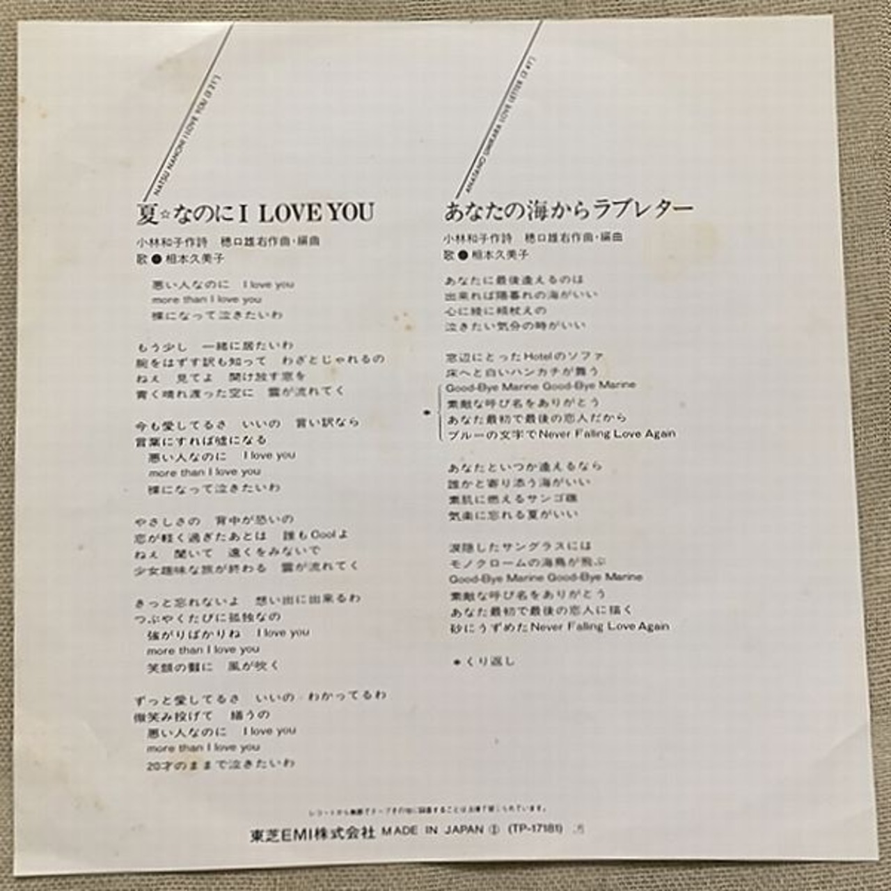 1981年、定価700円、東芝EMI、番号TP-17181