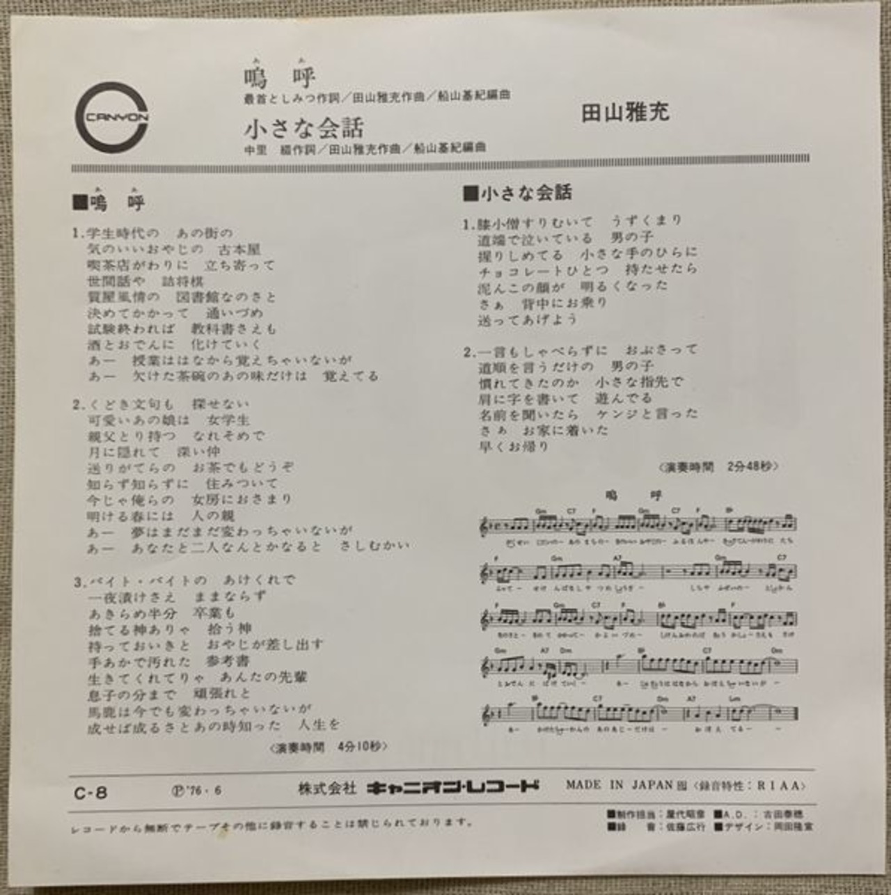 作詩/最首としみつ、作曲/田山雅充、編曲/船山基紀