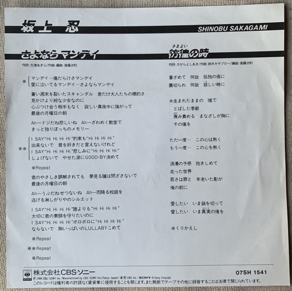 1984年、定価700円、CBS・ソニー、番号07SH1541
