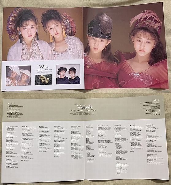 裏がカラー・ピンナップになっている見開きの歌詞カード付