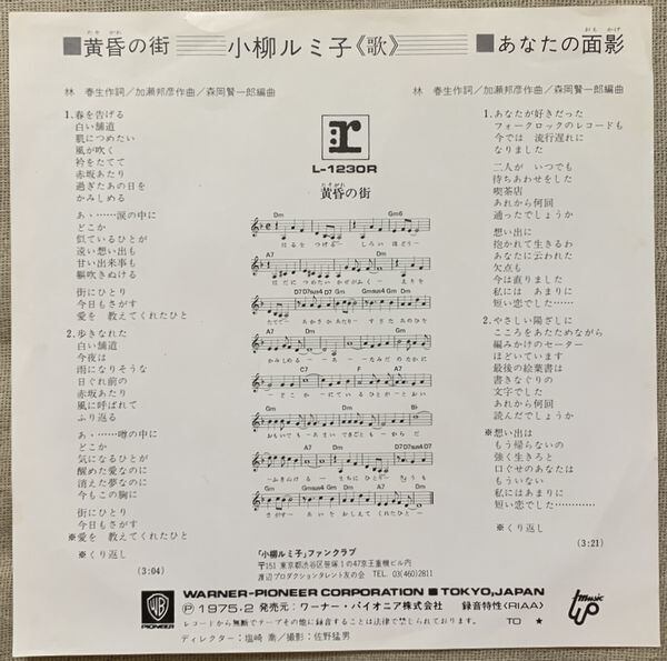 1975年、定価500円、ワーナー・パイオニア、番号L-1230R