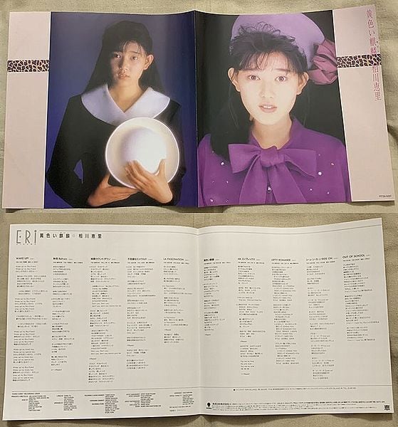 裏がカラー・ピンナップになっている見開きの歌詞カード付
