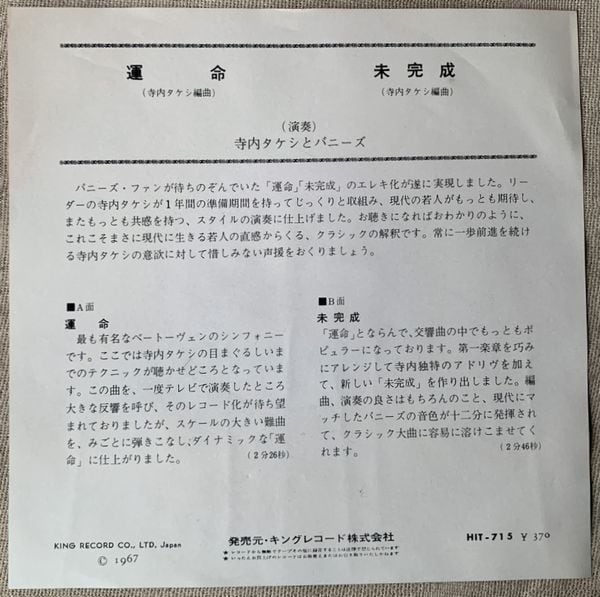 盤はヘッドフォンで試聴済みで、当時のアナログ中古盤としては特に問題ないように思われました