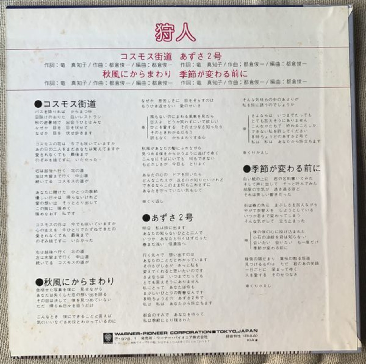 1978年、定価800円、ワーナー・パイオニア、番号L-3052W