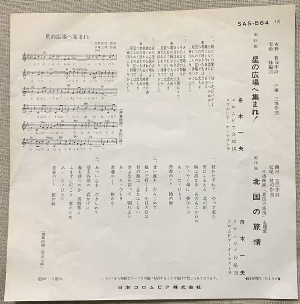 1967年、定価330円、日本コロムビア、番号 SAS-864