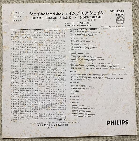A面「シェィム・シェィム・シェィム 」Shame, Shame, Shame