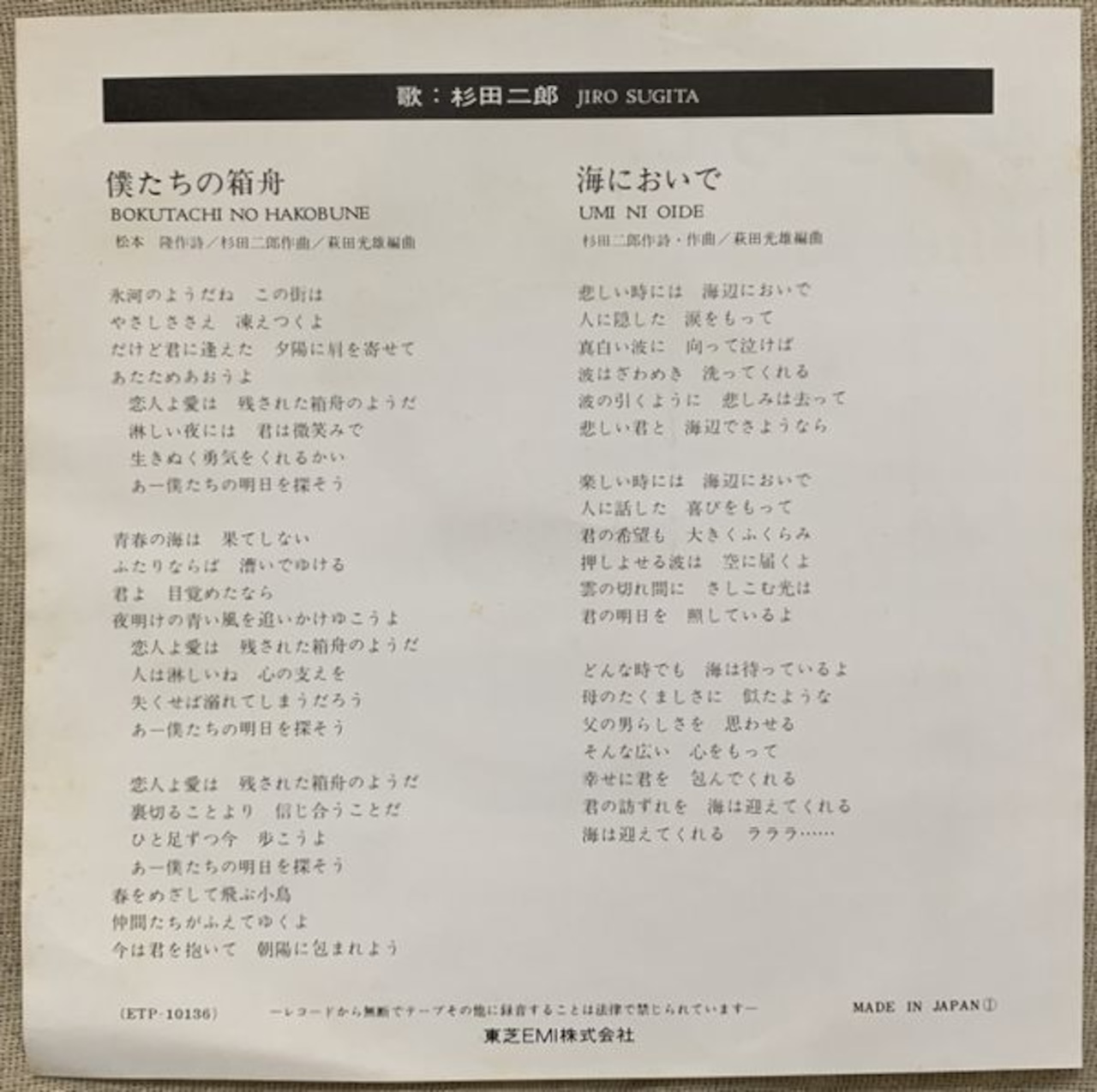 定価600円、東芝EMI、番号ETP-10136
