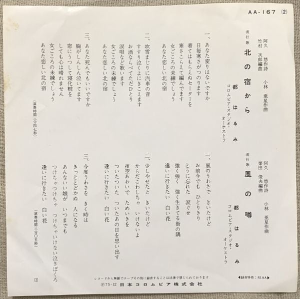 1975年、定価500円、日本コロムビア、番号AA-167