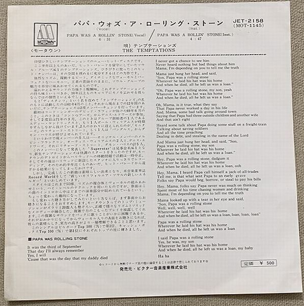 A面「パパ・ウォズ・ア・ローリング・ストーン( Vocal)」Papa Was A Rollin' Stone (Vocal)