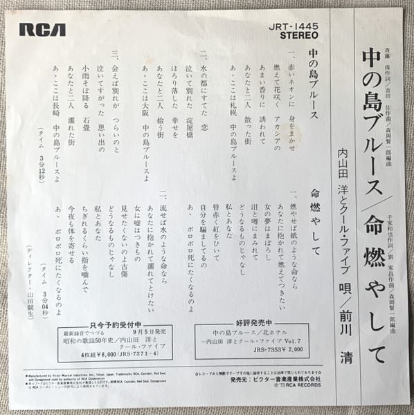 1975年、定価500円、ビクター音楽産業、番号JRT-1445