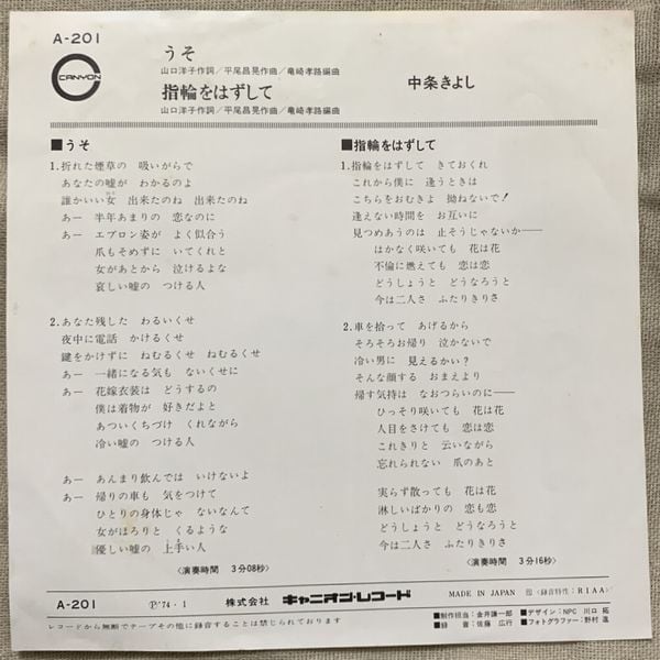1974年、定価500円、キャニオン、番号A-201