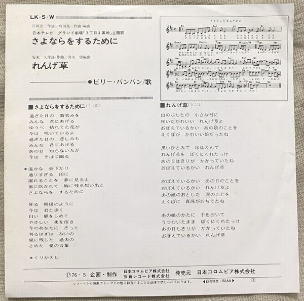 1976年、定価600円、日本コロムビア、番号LK-5-W