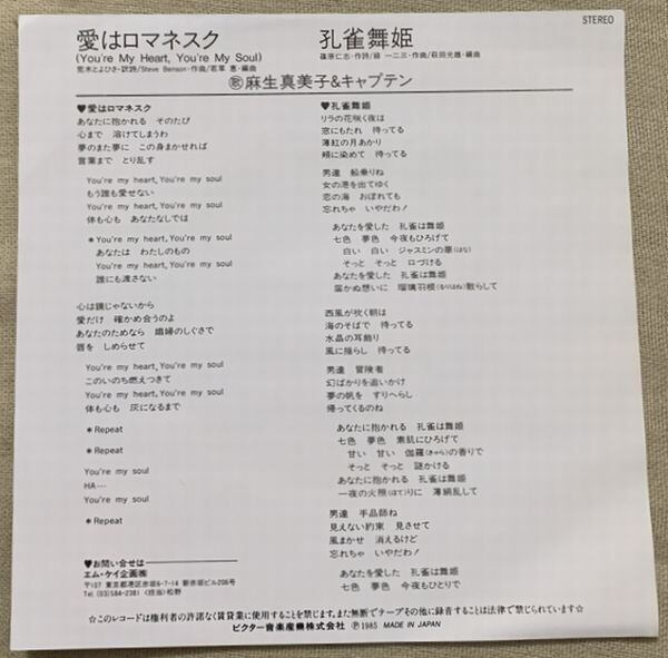 麻生真美子 & キャプテン / 愛はロマネスク(You're My Heart, You're My Soul)
