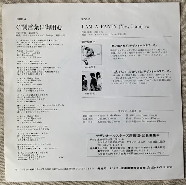 1979年、定価600円、ビクター音楽産業、番号VIH-1063