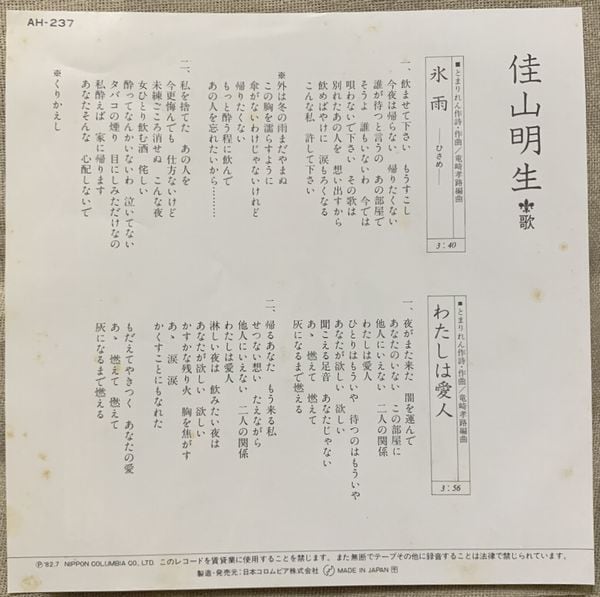 1982年、定価700円、日本コロムビア、番号AH-237