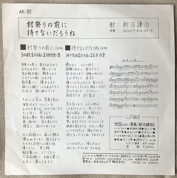 1977年、定価600円、日本コロムビア、番号AK-80