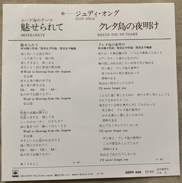 1979年、定価600円、CBS・ソニー、番号06SH456
