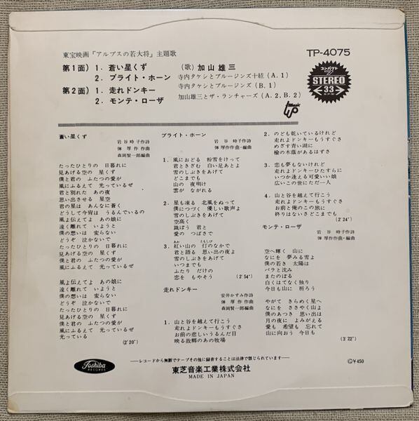 定価450円、東芝音楽工業、番号TP4075